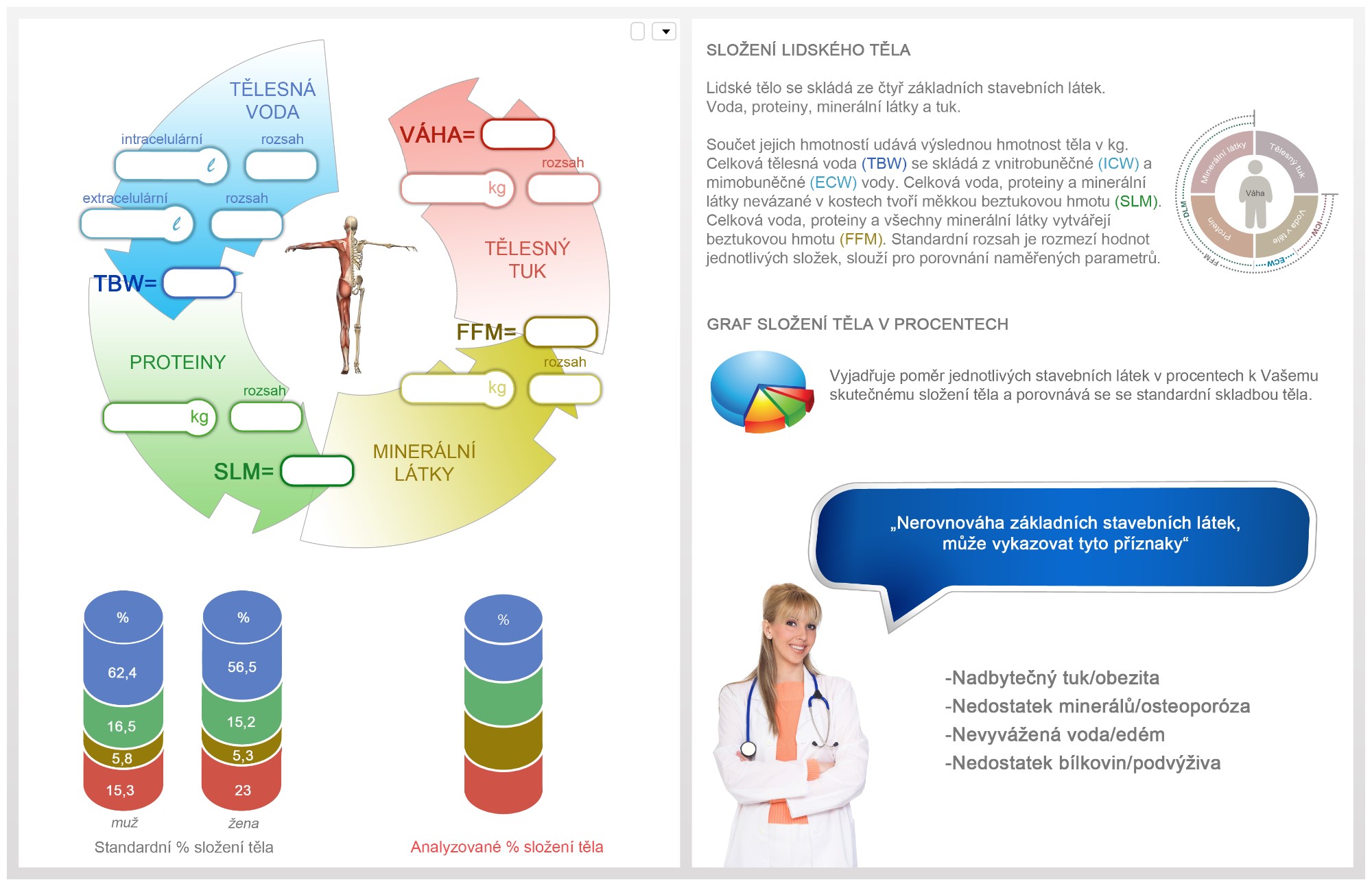Diagnostika složení těla s analýzou výsledků